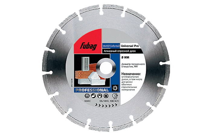 - Диск алмазный универсальный Fubag Universal Pro 12230-3, сухая, 230 мм, 22.2 мм, 2.4 мм, 7.0 мм