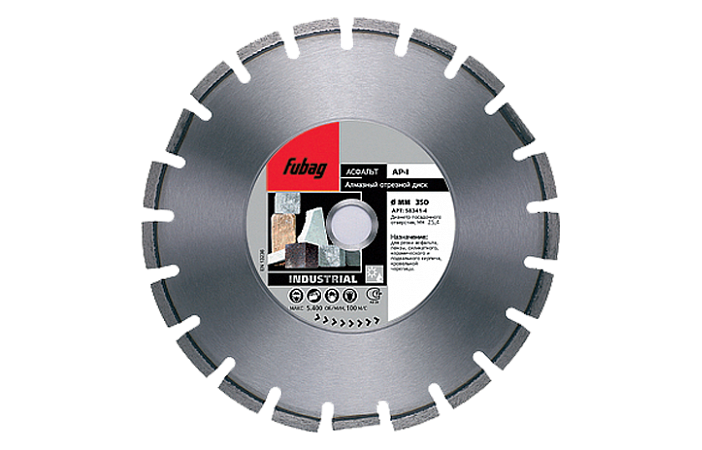 - Диск алмазный по асфальту Fubag AP-I 58341-4, сухая, мокрая, 350 мм, 25.4 мм, 3.0 мм, 10 мм