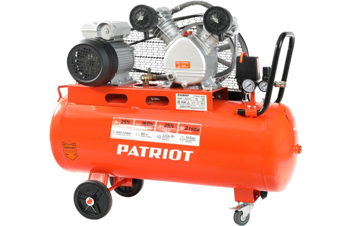 - Компрессор масляный Patriot PTR 80-450 A, 80 л, 450 л/мин, 2.2 кВт, 230 В