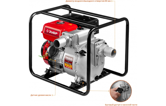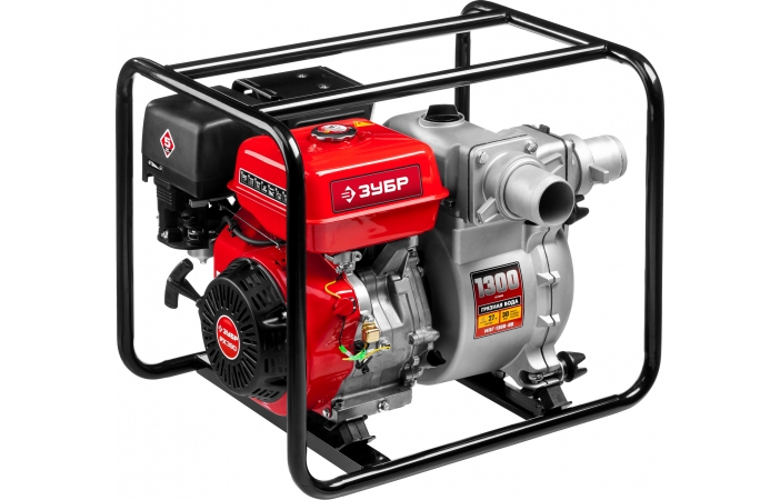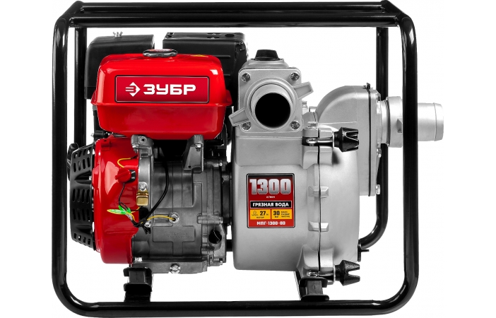 Мотопомпа бензиновая ЗУБР МПГ-1300-80, грязная вода, 1300 л/мин, 27 м, 76.2 мм, ЗУБР