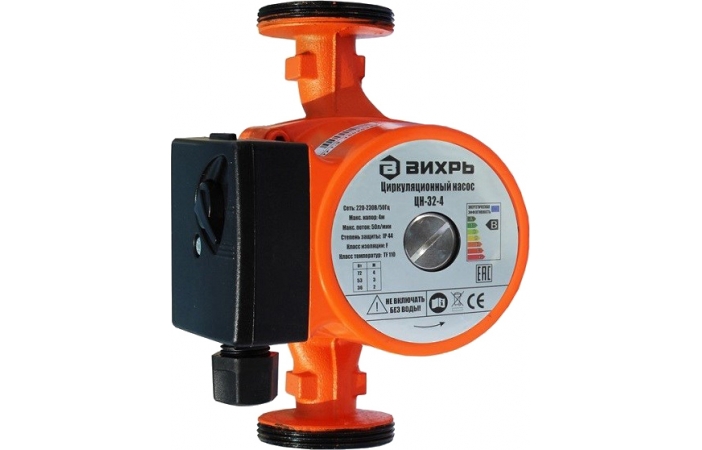 - Насос циркуляционный Вихрь ЦН-32-4, чистая вода, 50 л/мин, 4 м, 72 Вт