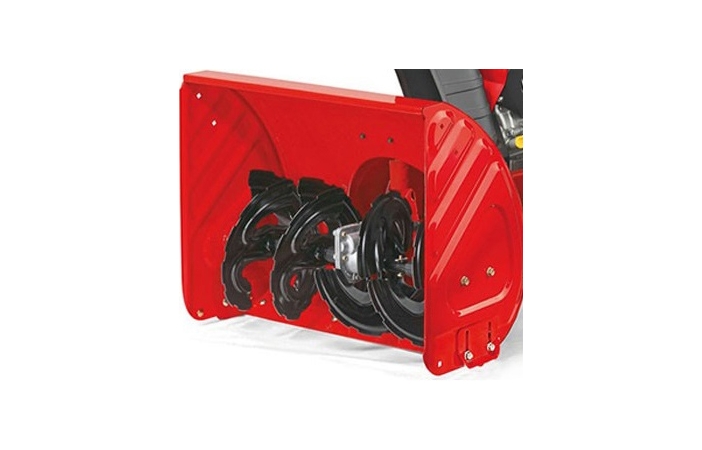 Машина имеет двухступенчатую систему очистки. Зубчатый обрезиненный шнек позволяет проводить качественную уборку любого типа снега, даже с примерзшей наледью.
