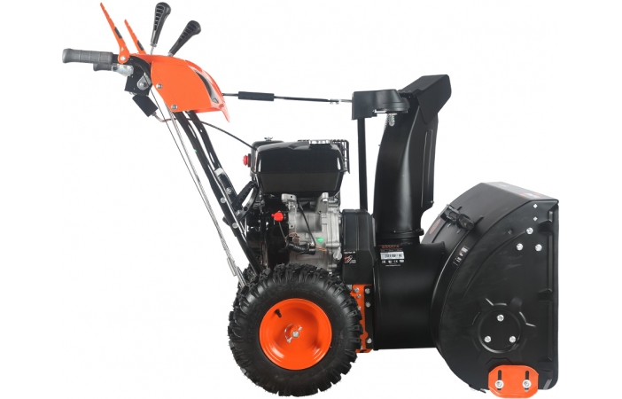 Эта модель укомплектована двумя шнеками. Верхний шнек является запатентованной технологией и предназначен для работы с твердыми слоями снега с высотой снежного покрова более 40 см. Мощный двигатель 9 л.с. позволяет справиться с большим объемом работ. Наличие пяти скоростей «вперед» и двух «назад» обеспечивает высокую маневренность и позволяет выбрать оптимальный режим работы. В конструкции снегоуборщика используются только подшипники, что увеличивает срок его эксплуатации. Шестерня редуктора шнека выполнена из бронзы, что в десятки раз увеличивает ресурс снегоуборщика. На заводе производится регулировка и обкатка каждой единицы техники в собранном состоянии.