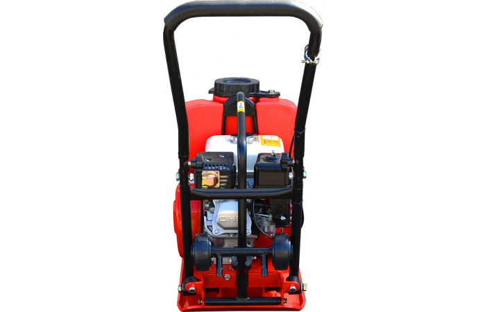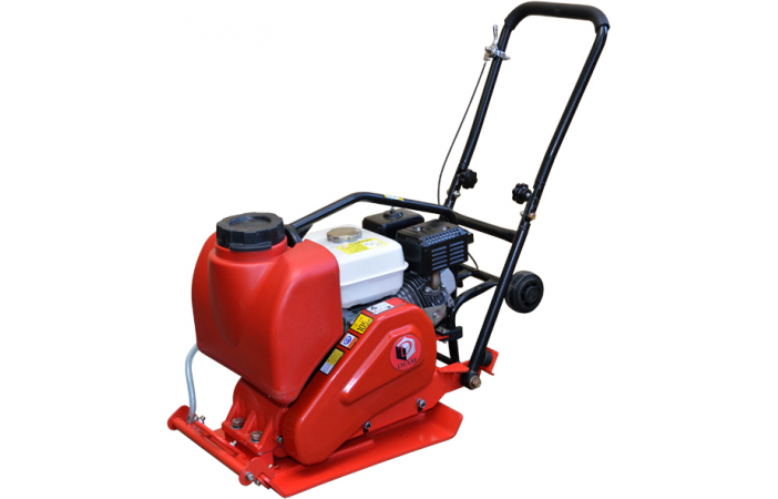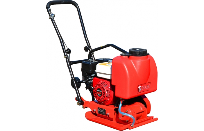 Виброплита оснащена автономным бензиновым двигателем, баком для воды, а также может комплектоваться ковриком для уплотнения тротуарной плитки (опция).