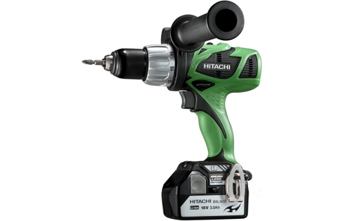 - Дрель-шуруповерт аккумуляторная ударная Hitachi DV 18 DBL-RJ, 74 Нм, 65 мм, 13 мм, Li-Ion, 18 В, 5.0 Ач