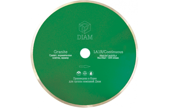 Универсальный алмазный круг со сплошной режущей кромкой для резки гранитной, мраморной и керамической плитки на стационарных станках и переносных плиткорезах.