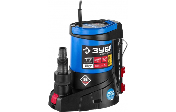 - Насос дренажный ЗУБР АкваСенсор НПЧ-Т7-250, чистая вода, 100 л/мин, 250 Вт