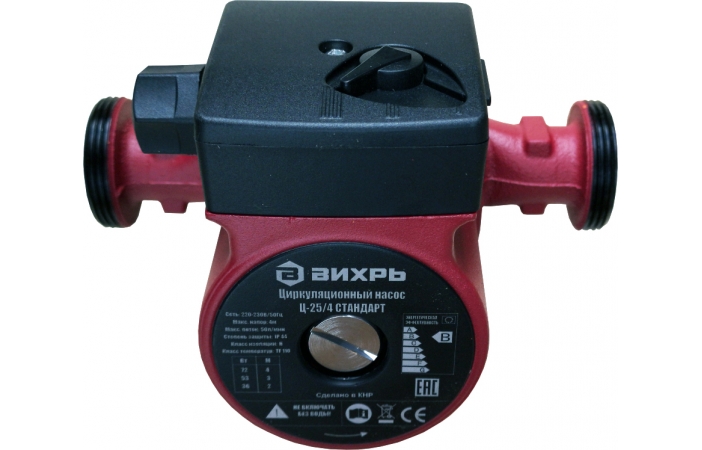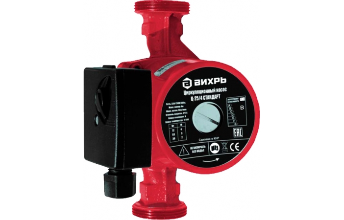 - Насос циркуляционный Вихрь Ц-25/4 СТАНДАРТ, чистая вода, 50 л/мин, 72 Вт, 4 м