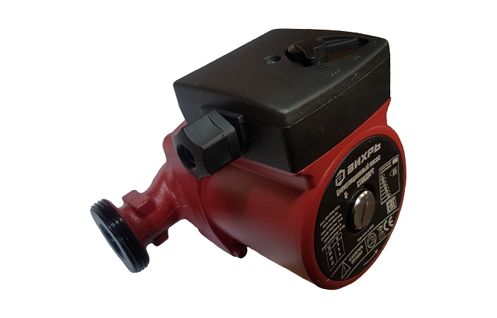В названии циркуляционных насосов Вихрь отражены два параметра, например: Ц-25/4. Первые две цифры — это диаметр присоединительных патрубков. В нашем случае 25 мм (1 дюйм) — диаметр резьбы гаек, поставляемых в комплекте с циркуляционным насосом. Он должен соответствовать диаметру труб (переходников) в системе отопления. В системах отопления наиболее распространены два диаметра - 25 и 32 мм. Второе число обозначает максимальный напор насоса. В нашем примере максимальный напор составляем 4 м, то есть он может создавать избыточное давление до 0,4 атм. Этот параметр должен превышать расчетный напор требуемый для системы отопления. Пример упрощенного расчета требуемого напора будет приведен ниже. Потребляемая мощность циркуляционных насосов регулируется ступенчато (3 положения). Мощность и максимальный напор для каждой ступени указан в таблице на корпусе насоса. Кабель питания подключается к клеммной колодке и в комплект не входит.