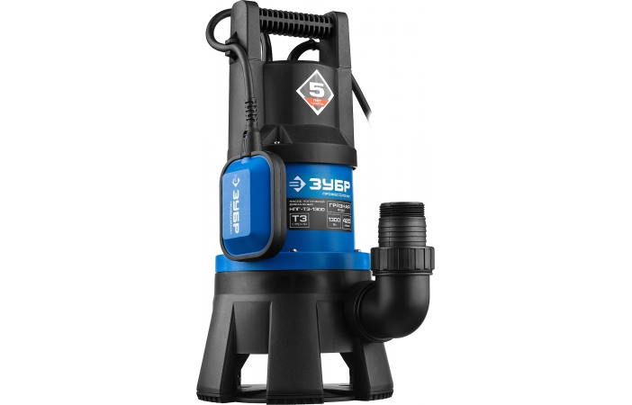 Насос дренажный ЗУБР НПГ-Т3-1300, грязная вода, 420 л/мин, 1300 Вт