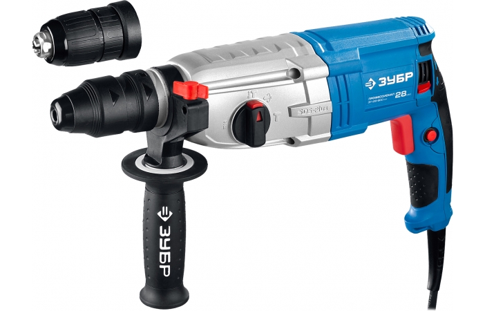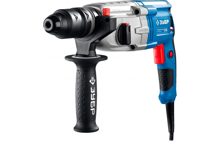 - Перфоратор ЗУБР ЗП-28-800 КМ, трехрежимный, 3.2 Дж, 3.6 кг, 800 Вт