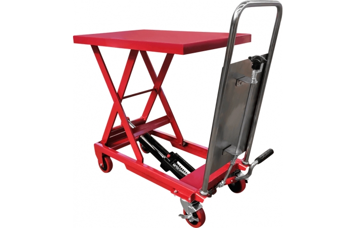 В качестве подъёмного механизма служит одинарный ножничный гидравлический привод, который приводится в действие вручную. Имеет удобную ручку управления с возможностью плавного подъёма. Используется для сервисных, разгрузочно-погрузочных и ремонтных работ.