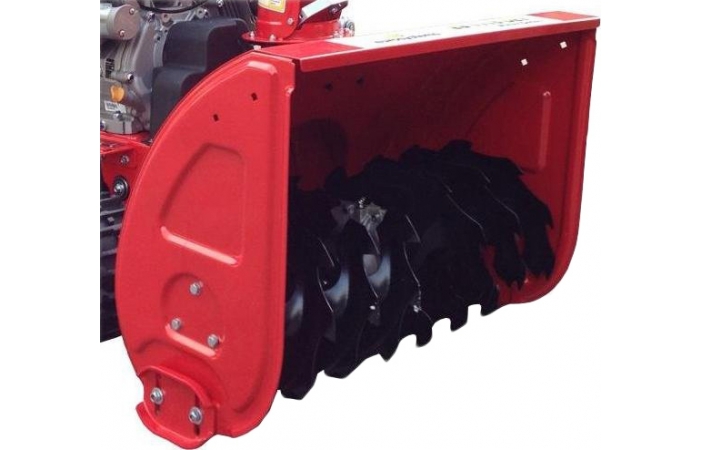 Система уборки снега состоит из двух ступеней. Первая ступень: стальной шнек с зубчатой кромкой позволяет убирать даже плотный слежавшийся снег. Вторая ступень: с помощью стальной крыльчатки происходит выброс измельченного снега через дефлектор. Подвижное крепление желоба дефлектора, поворот на 190 градусов, дистанционное механическое управление.