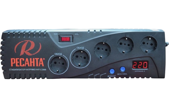 Стабилизатор напряжения РЕСАНТА РЕСАНТА С2000 (сетевой фильтр) предназначен для выравнивания входного напряжения и защиты приборов от перепадов напряжения с суммарной мощностью до 2 кВт. Работает с напряжением 220В с точностью до +/-8%. Устройство оснащено фильтрами сетевых помех, предотвращающими искажение частотной синусоиды, микропроцессорным управлением и дисплеем. Превышение пределов поддерживаемого входного напряжения автоматически отключает подачу питания. Прочный корпус защищает внутренние узлы аппарата от повреждений. Прибор может обеспечивать стабильным питанием - телевизор, ресивер, DVD проигрыватель, кассовый аппарат, газовый котел.